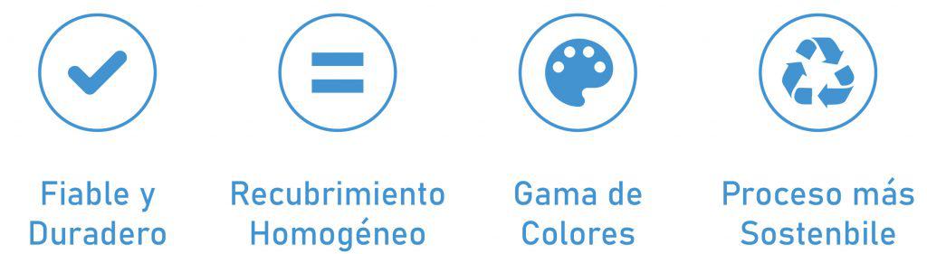 La pintura en polvo es más fiable y duradera que la pintura líquida, tanto en la aplicación como en el acabado. Además es una de las opciones más sostenibles con el medio ambiente. Este proceso consiste en la aplicación de una película homogénea de color en base al polvo seco que se adhiere a la pieza.